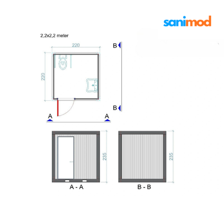 220x220 Behinderten WC mit waschbecken (einflügelig)