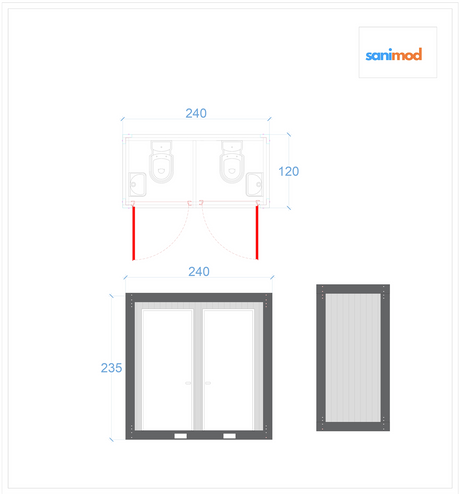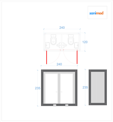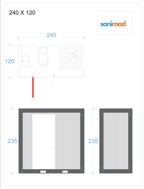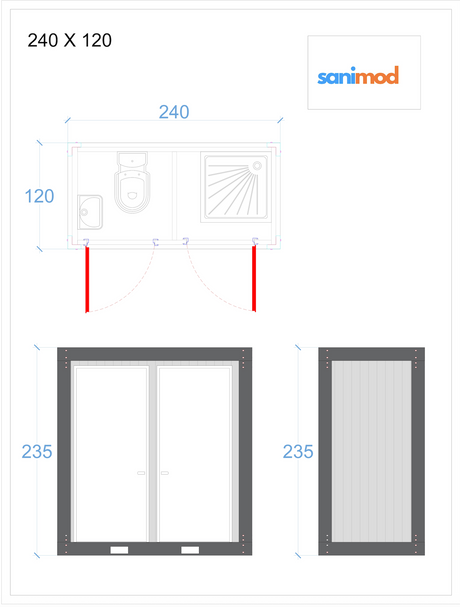 120x240 Dusche & WC mit waschbecken (zweiflügelig)