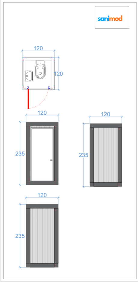 120x240 Dusche & WC mit waschbecken (einflügelig)