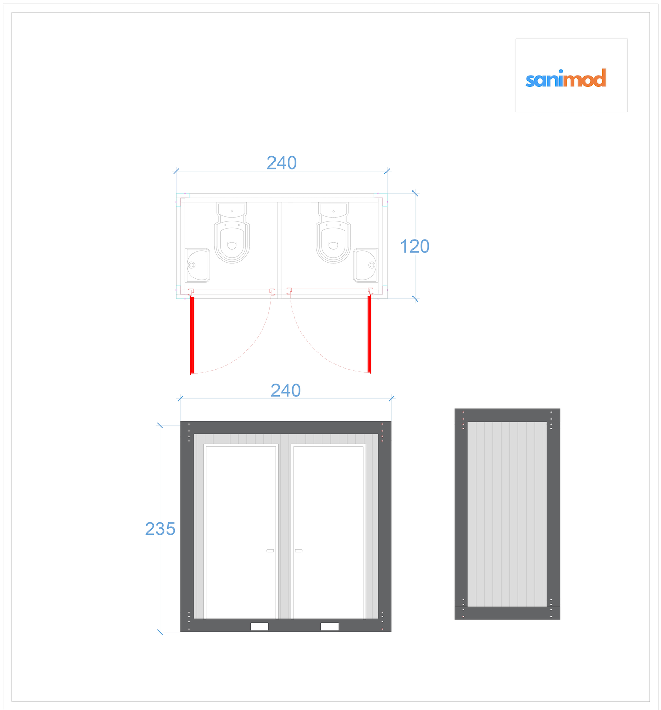 120x240 Doppel WC mit Waschbecken ist auf Lager und wird versandt, sobald es wieder verfügbar ist